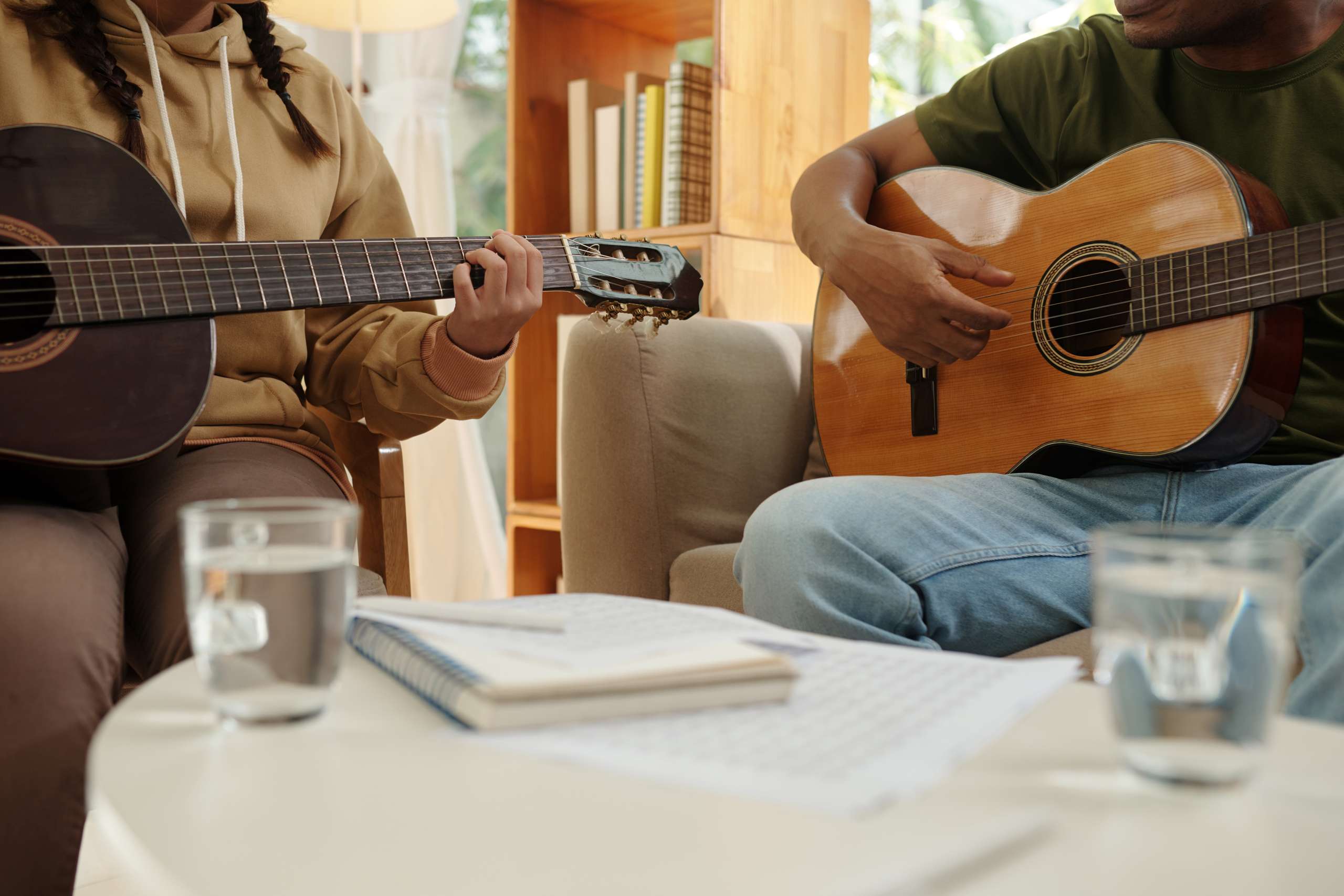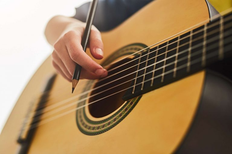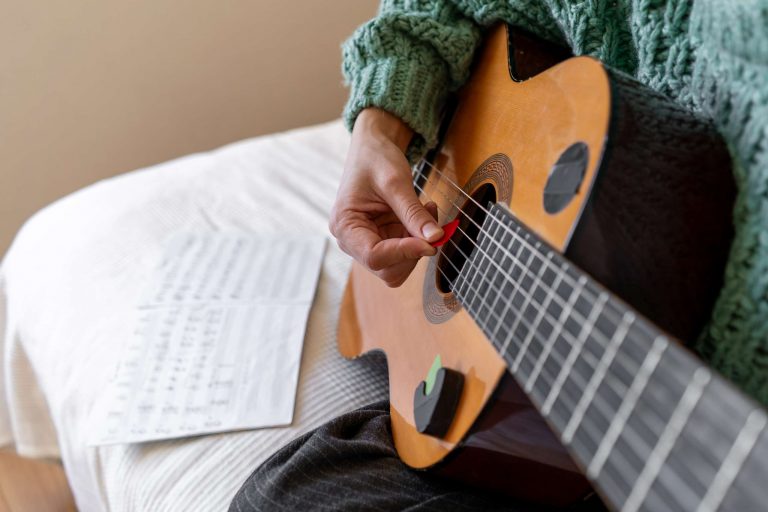 Most people start out by practicing shapes and chords, maybe even a simple strumming pattern…